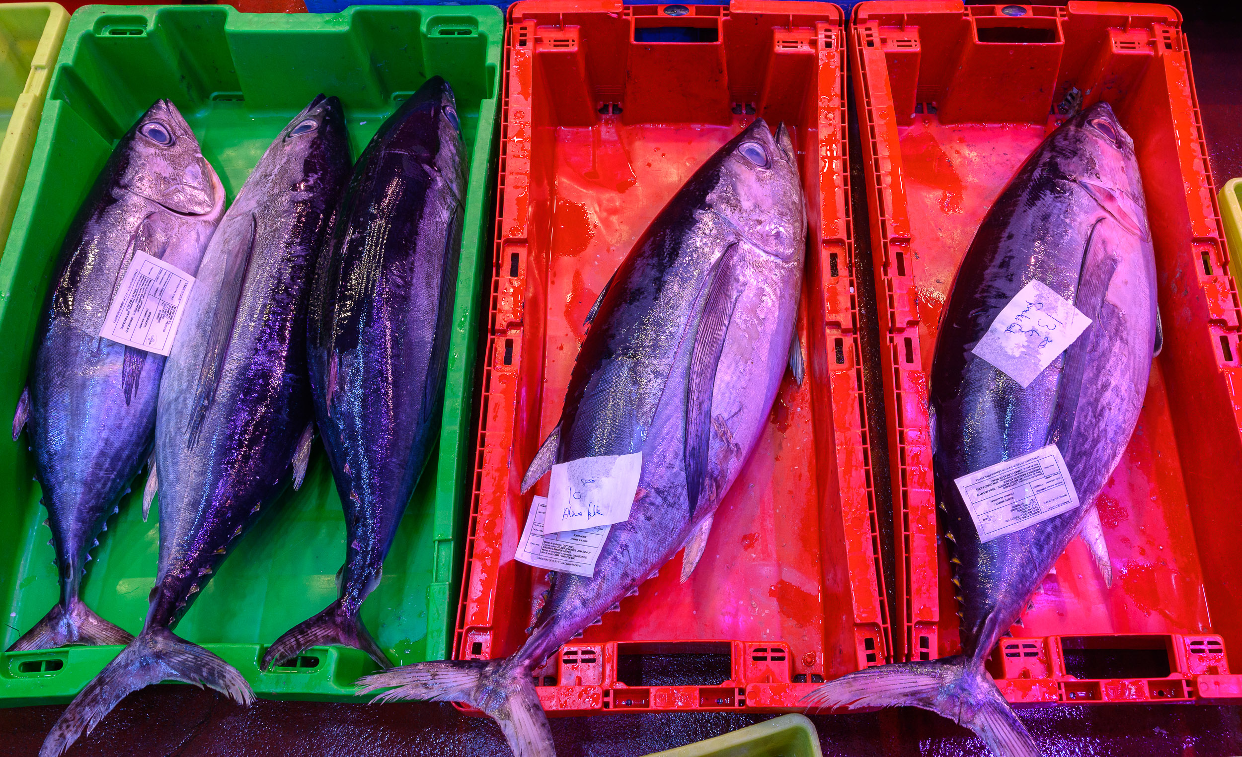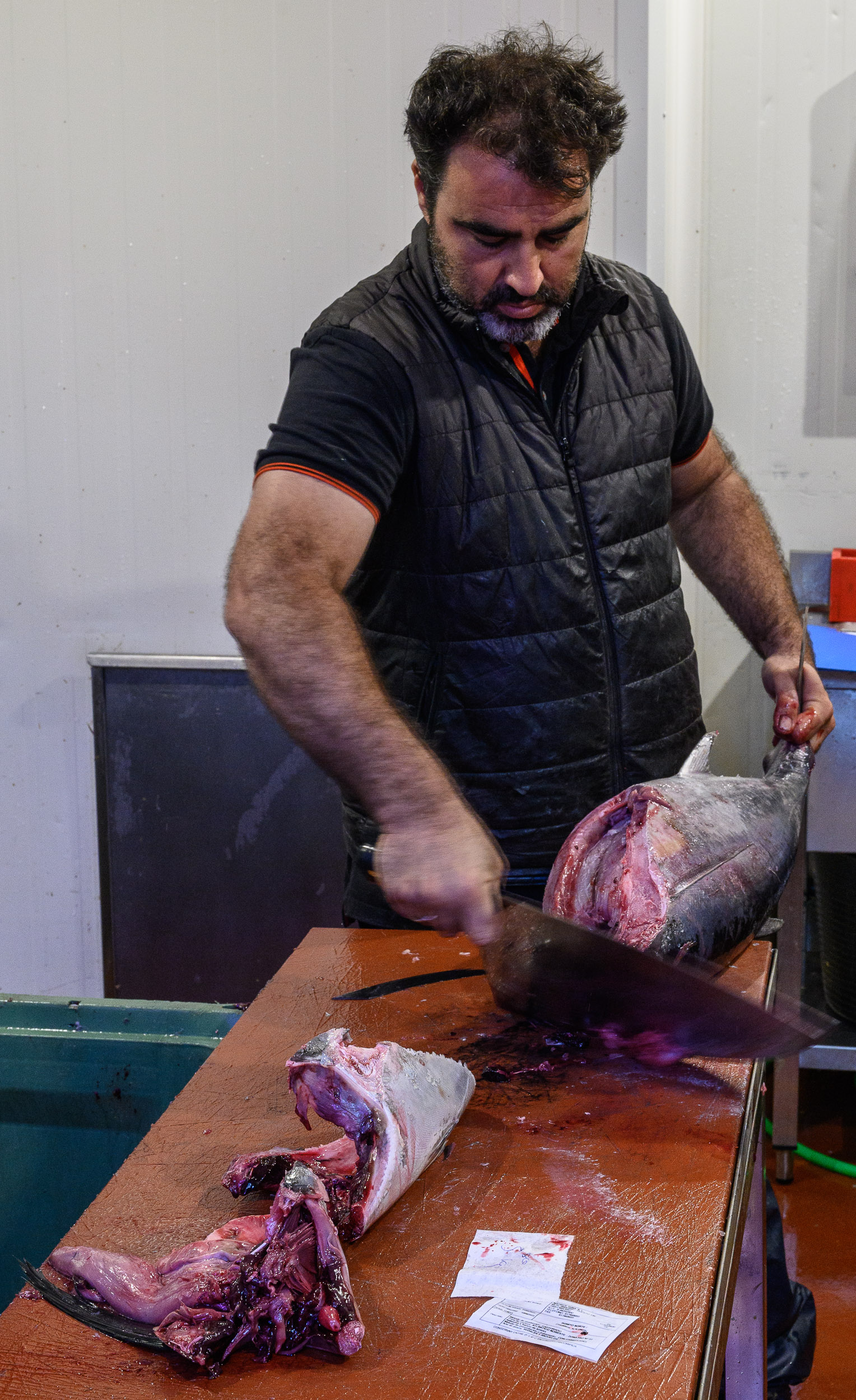 Roberto Pérez Castro, de la empresa Matrice Tuna, prepara un bonito para uno de sus clientes.