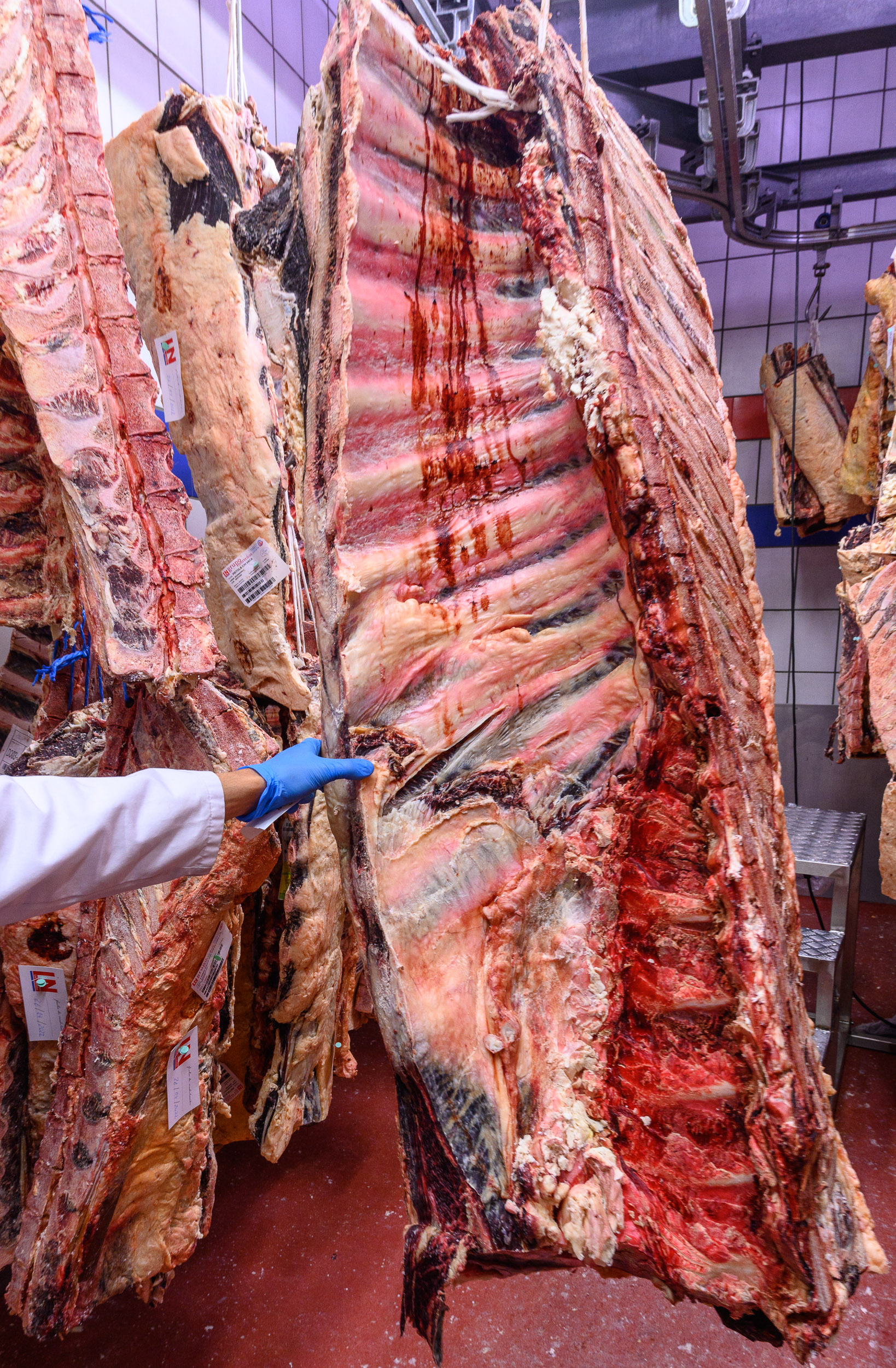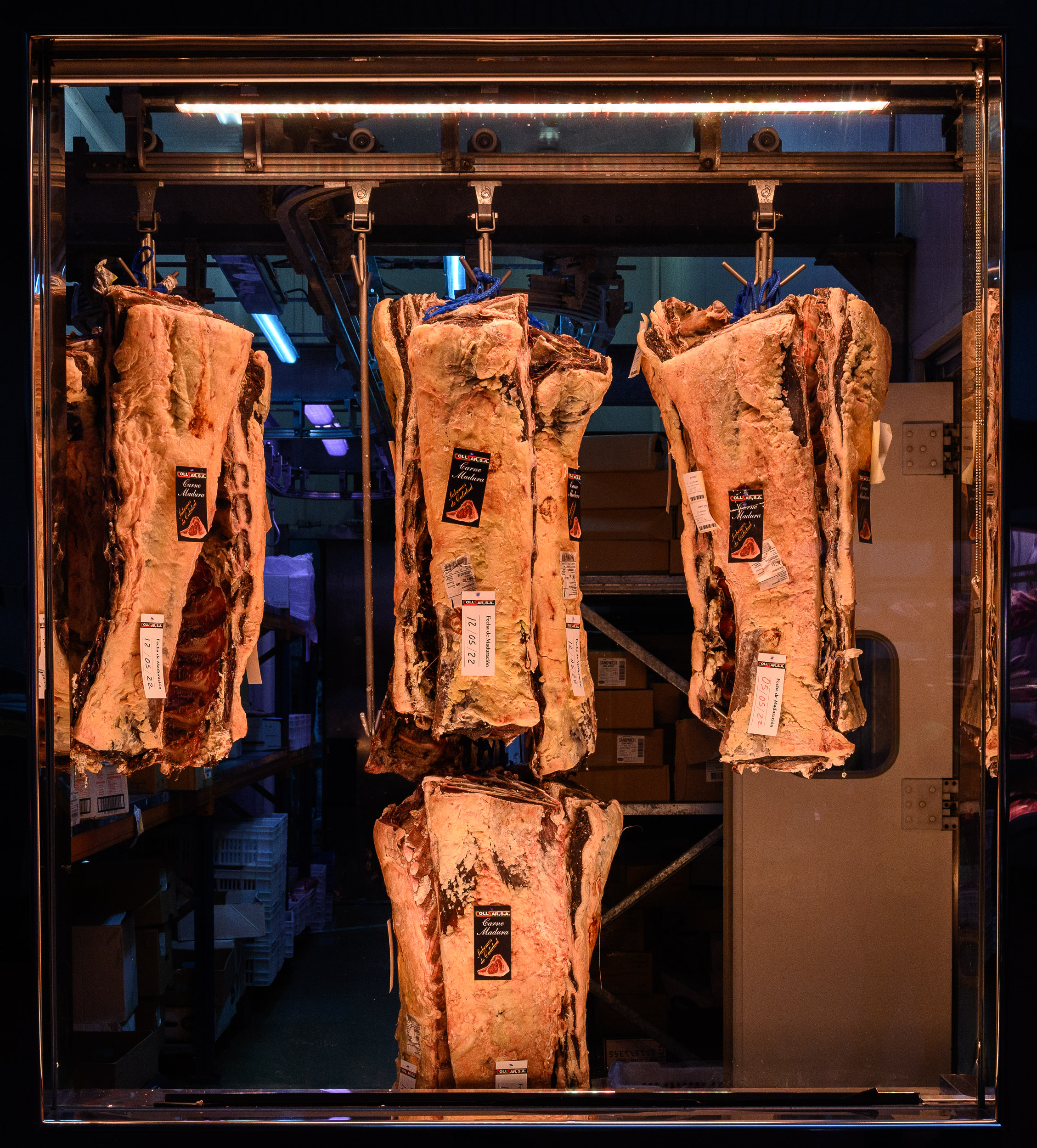 Una impresionante pieza de buey esperando acabar su proceso de maduración.