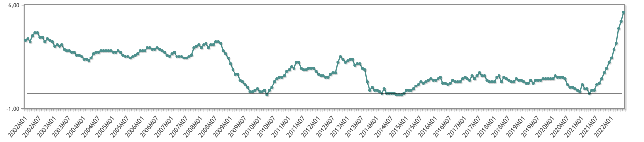 La infalción subyacente, en su tasa más alta de los últimos 30 años, lo que indica, en esencia, es que la subida de precios es consistente y no responde únicamente a los efectos de factores exógenos como la guerra en Ucrania. Los economistas consideran que los alimentos no elaborados o los productos energéticos pueden estar sujetos a fuerte volatilidad y por eso elaboran este indicador quitando de la ecuación estos valores. Sin ellos, una subida tan vertiginosa como la que estamos experimentando y que se refleja en la gráfica histórica del INE, da una idea de la tendencia de precios y de lo anclada que está a nuestra economía. Dicho de otro modo, es un indicador que cada día resta más credibilidad a voces como la de Calviño que han insistido en que la inflación que sufrimos es un efecto coyuntural y pasajero.