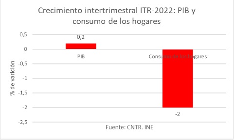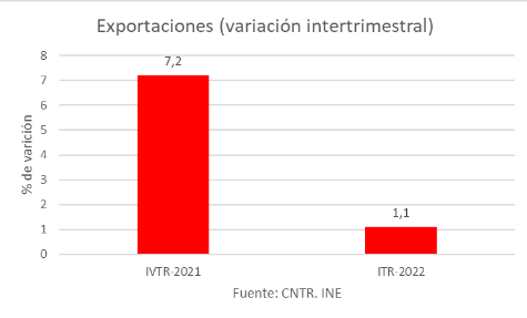 Esa pérdida de competitividad se vio ya en el dato del PIB del ITR-2022, con una reducción importante de las exportaciones españolas: del 7,2% al 1,1% en un trimestre. Al ser menos competitivos, se pierden mercados, porque no podemos competir en el mercado internacional ante otras opciones menos costosas. Eso merma la actividad y el empleo.