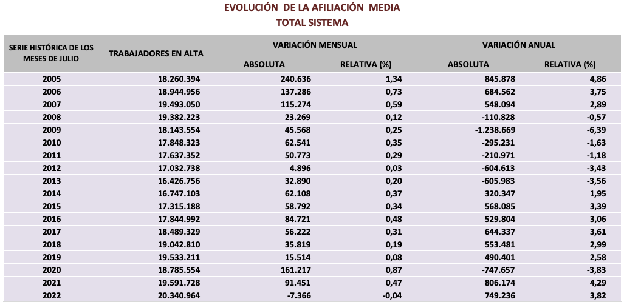 En cualquier caso, la creación de empleo que siguió a la pandemia, amén de los maquillajes estadísticos del Gobierno, hacen que la afiliación se mantenga por encima de los 20,11 millones de cotizantes.