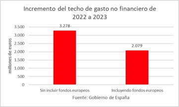 Es decir, crece más el gasto que no cuenta con financiación europea, con lo que el desequilibrio es todavía mayor, ya que el financiado con fondos europeos es neutro desde el punto de vista del saldo presupuestario.