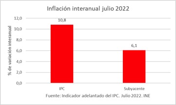 Toda esta equivocada política económica de Sánchez está agravando los desequilibrios de la economía española, con una inflación que sube hasta el 10,8% en julio, con la subyacente, que es más grave todavía, en el 6,1%.