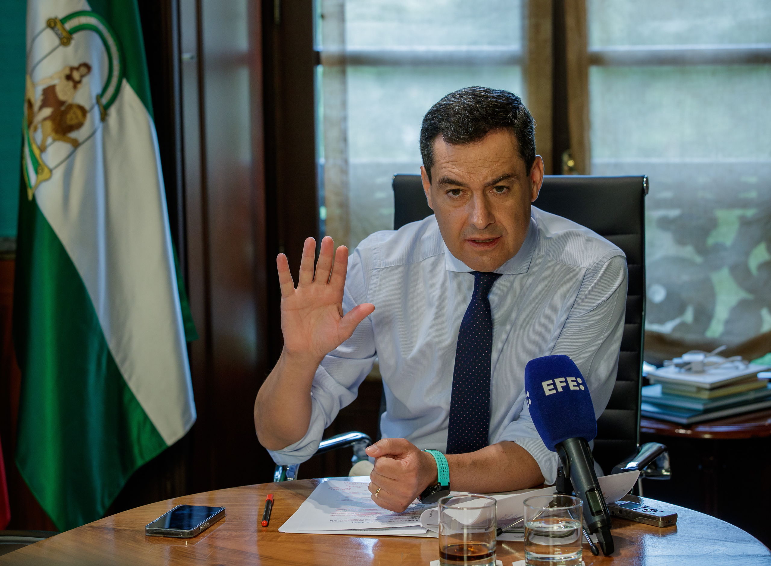 El jefe del Ejecutivo andaluz ha marcado así distancia con la posición de la presidenta de la Comunidad de Madrid, Isabel Díaz Ayuso, que recurrirá el decreto ley ante el Constitucional y ha negado que Ayuso esté "marcando el paso" político al presidente del PP, Alberto Núñez Feijóo.