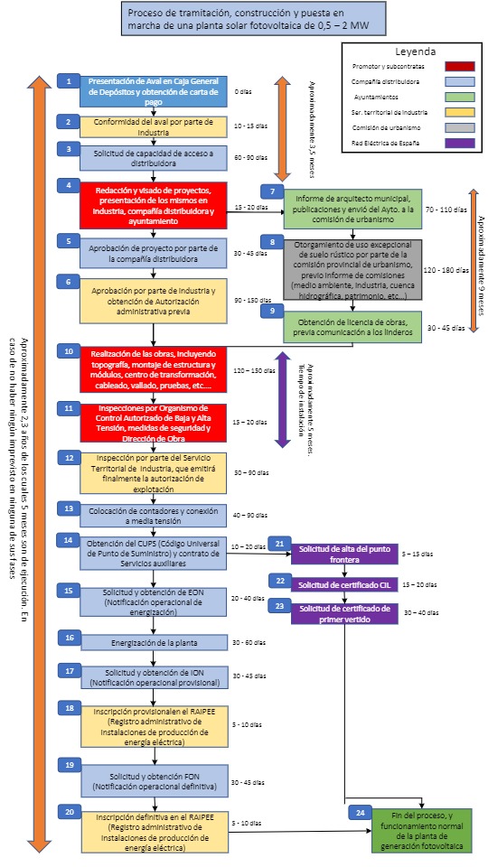 Y lo cierto es que, cuando nos hace un esquema de todos los organismos por los que tiene que pasar la solicitud —y que pueden ver en el cuadro adjunto—, entendemos su veredicto: hasta 24 pasos que involucran a Gobierno, ayuntamientos, Red Eléctrica y compañías. "Y probablemente haya que introducir alguno más, porque, por si esto fuera poco, van cambiando la normativa", denuncia Rodríguez.
