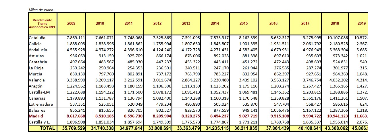 Así, en los últimos años, el IRPF está generando un rentable efecto Laffer para las arcas autonómicas de la Comunidad de Madrid: sus ciudadanos están menos asfixiados fiscalmente y la región recauda más.