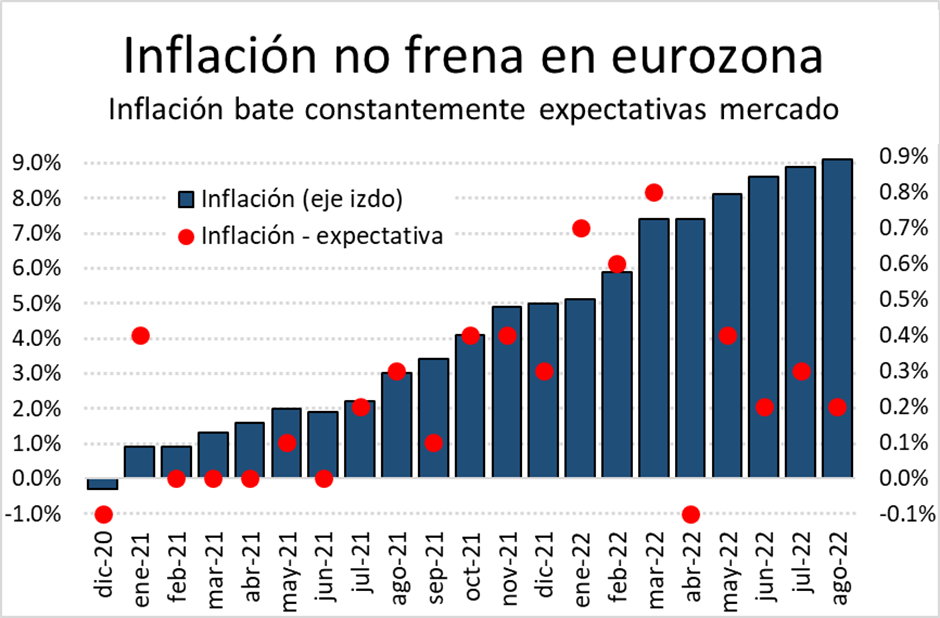 Empecemos comentando algo que el lector ya sabe, y es que la inflación está disparada en la práctica totalidad del mundo, y Europa no es una excepción.