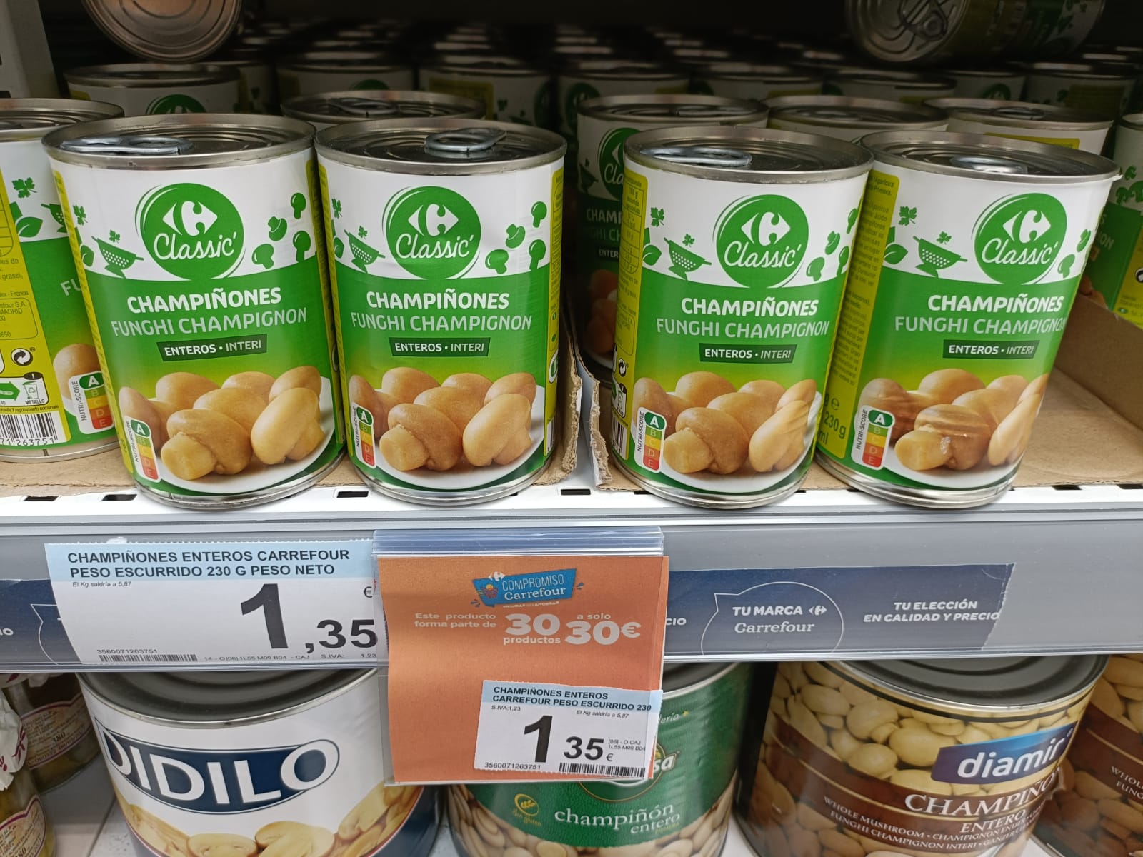 Aunque se anunció como una cesta, lo cierto es que en la práctica se trata de 30 productos sueltos que Carrefour ha ido escondiendo tácticamente en sus estanterías para que los clientes se vean obligados a recorrer todo el supermercado. Así, la única forma de identificarlos es una pequeña pegatina con el logo de la campaña 30x30. "Lo lógico era que estuvieran todos juntos en la misma zona, porque así a ver quién los encuentra. Vas a buscar el caldo o la coca-cola esa por ahí —dice en referencia al té frío que han incluido— y al final te pasa como a mí, que te gastas 100 euros".