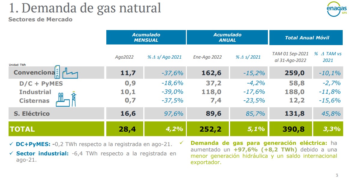 La demanda de gas ha subido. Concretamente, un 5% en lo que va de año. La razón no es que nos hayamos vuelto locos, ni que nos guste consumir más porque el gas está por las nubes. La razón es que se ha disparado un 85% la demanda de gas para producir energía eléctrica.