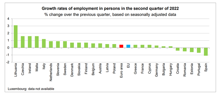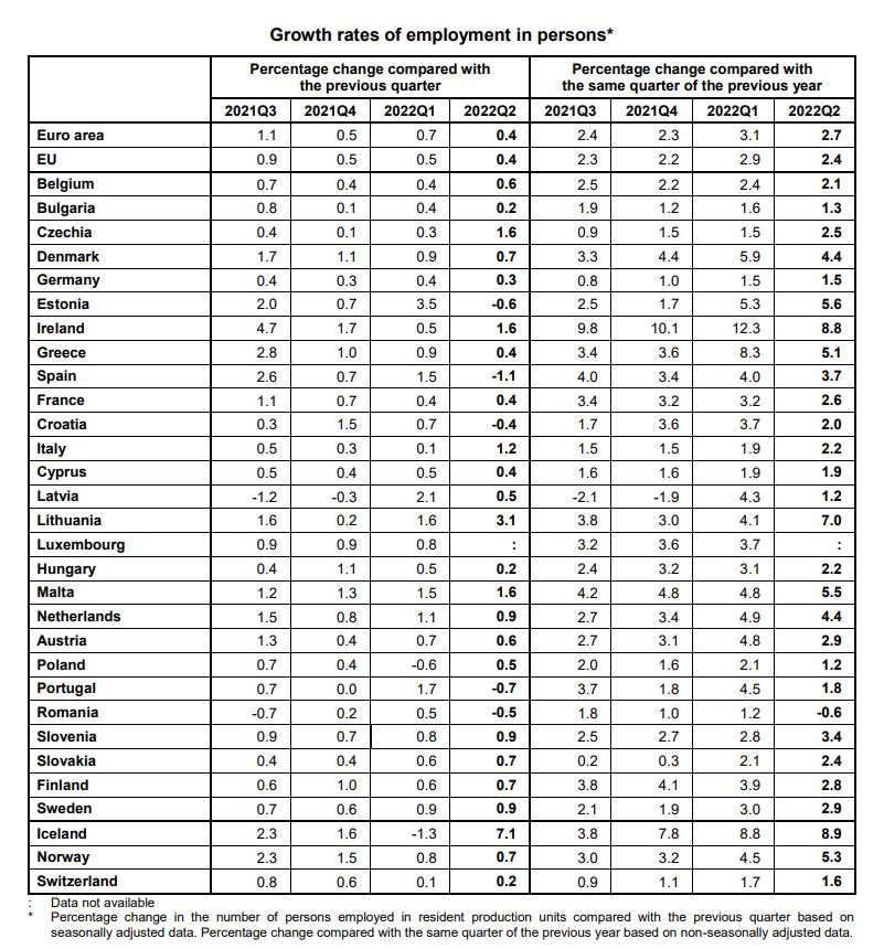 Eurostat confirma que se destruyó empleo en España en el segundo trimestre de 2022 (el empleo descendió un 1,1% intertrimestral ajustado de estacionalidad, que enmienda completamente los cálculos desestacionalizados de Escrivá que elevaban el empleo en el mismo trimestre).