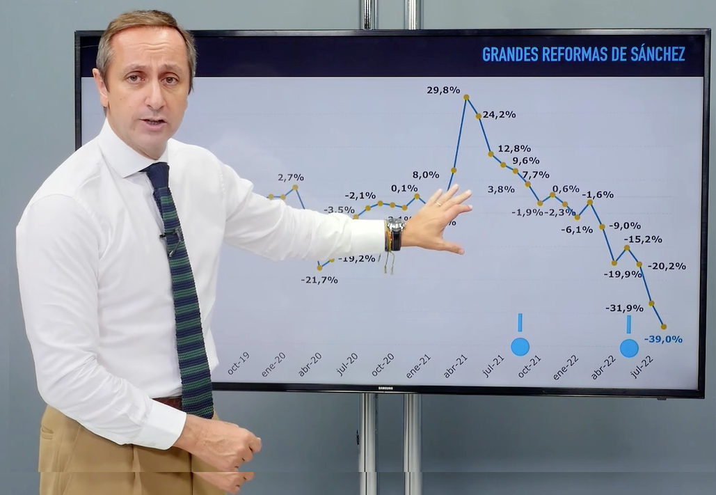El director adjunto de Libertad Digital, Carlos Cuesta, analiza, a través de un gráfico, los fracasos de las reformas de Pedro Sánchez en materia económica y energética en España.
