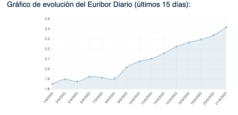 Sin embargo, el verdadero problema con el que se pueden encontrar muchos hipotecados a tipo variable es que ya soporten unas cuotas mensuales límite que podrían dispararse en caso de que el euríbor termine 2022 en el entorno del 4%, algo que no es descabellado si continúa la senda actual.