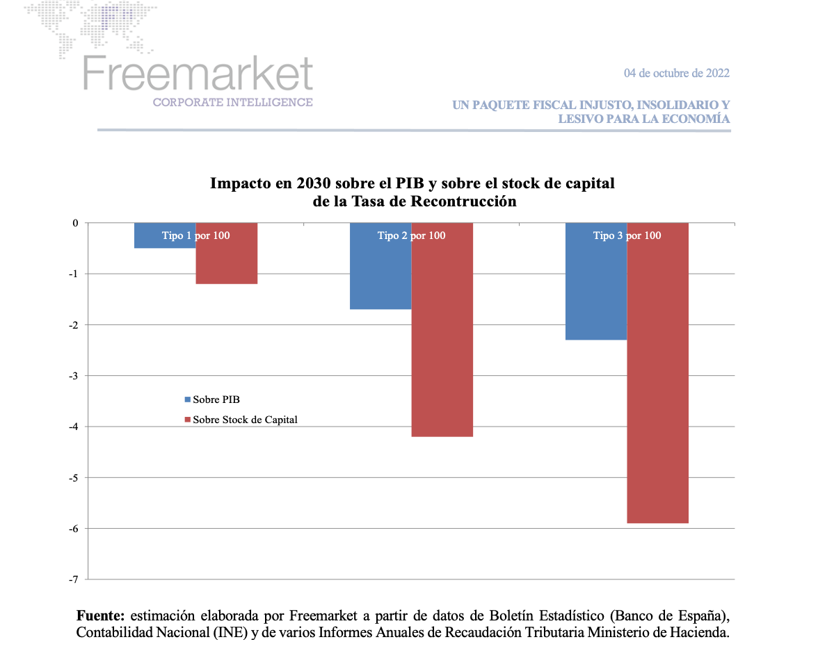Dicho de otro modo: cabe estimar que, por cada 1 euro redistribuido, se pueden perder hasta 50 euros de actividad económica, con todo lo que eso supone para el empleo y los salarios del conjunto de los españoles. Además, asumiendo una presión fiscal del 30% sobre el conjunto de la actividad, los 1.500 millones recaudados quedarían anulados por la pérdida recaudatoria de entre 2.000 y 10.000 millones que generaría este gravamen. Un desastre.