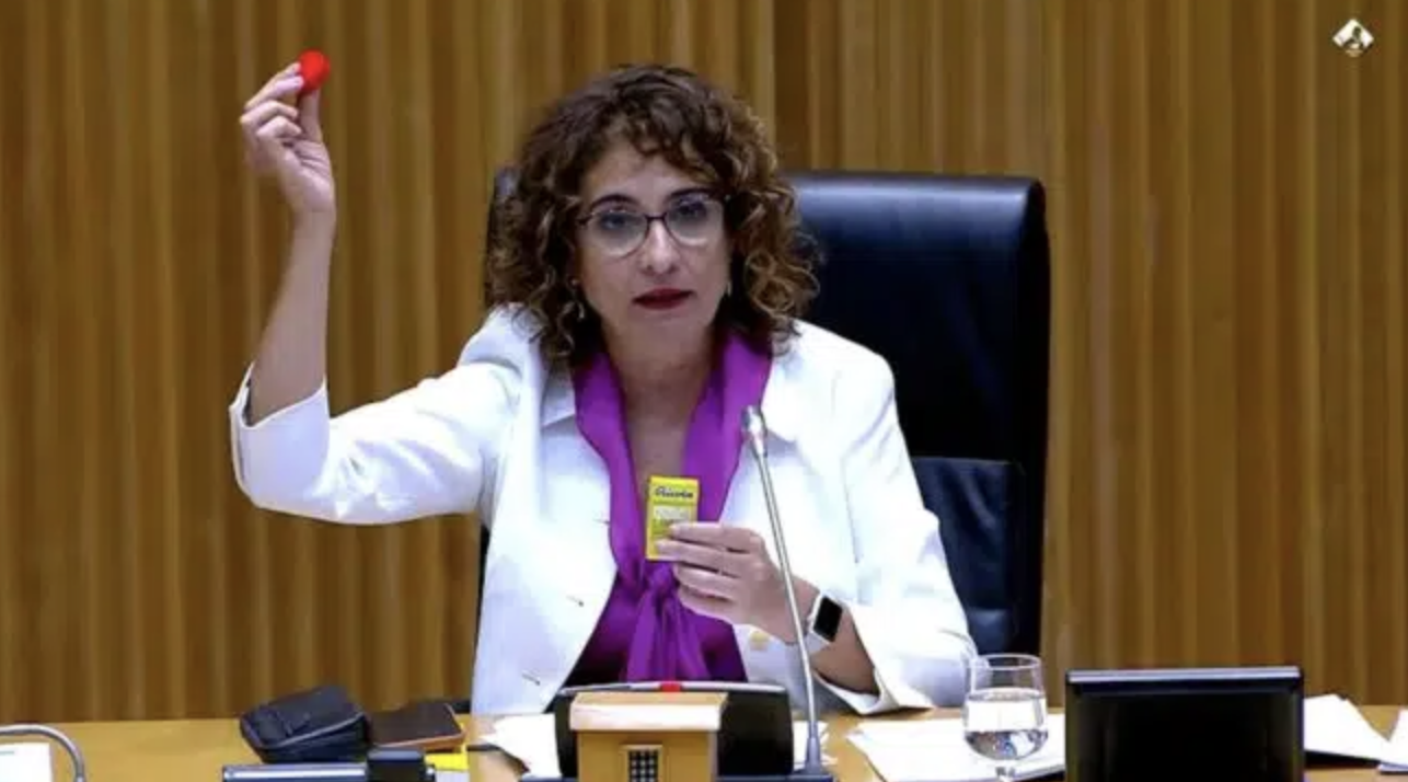 La ministra de Hacienda, María Jesús Montero, intentó explicar, ante los medios de comunicación, cómo funcionan los Presupuestos Generales del Estado con una caja de caramelos y otra de Juanolas.