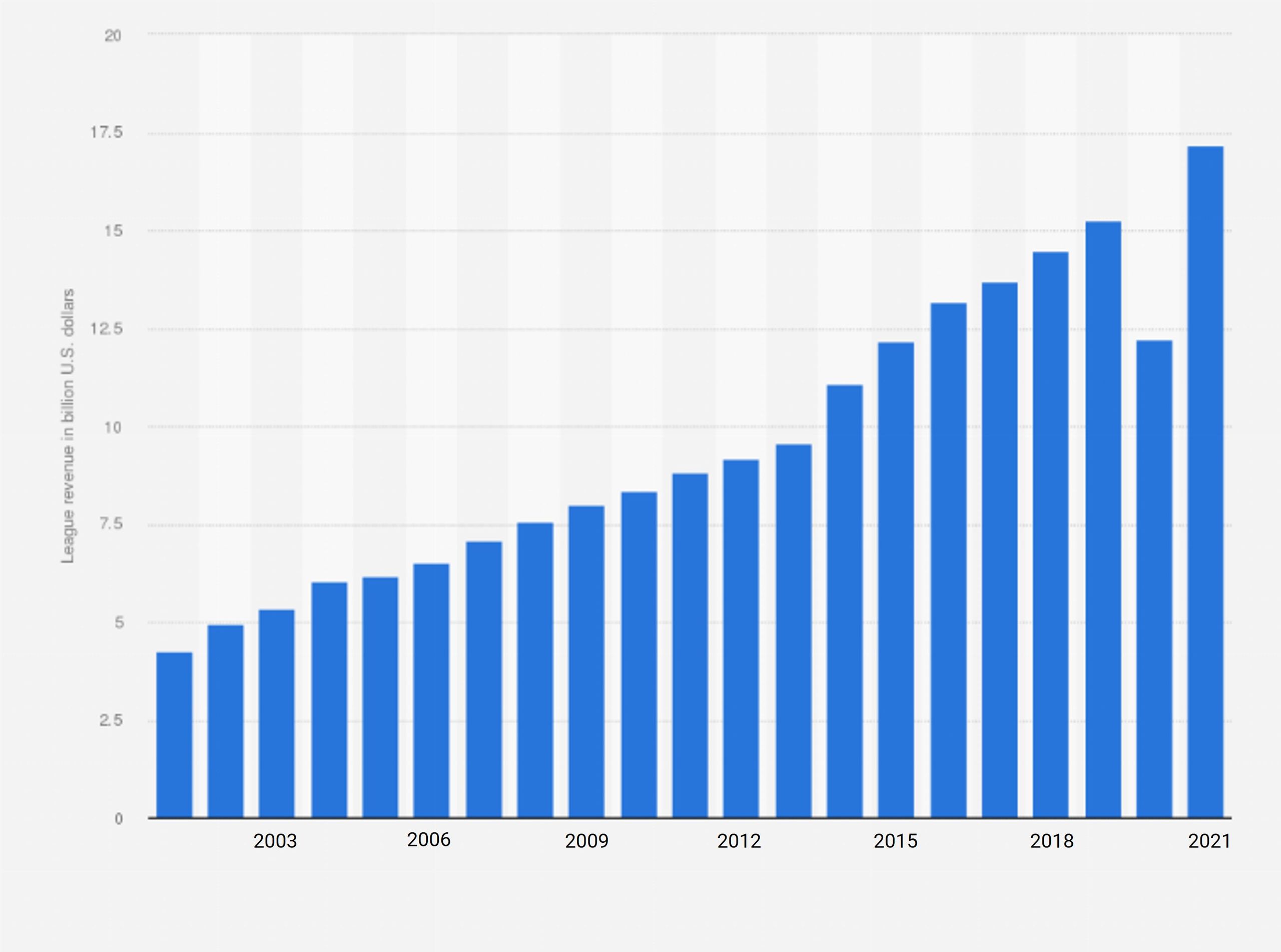 Para hacernos una idea del dinero que moviliza la NFL, destacar que, tan solo el año pasado, esta liga ingresó un total de 11.000 millones de dólares. Todo ello en una competición en la que se disputan poco más de 270 partidos por temporada. En comparación, la liga de fútbol inglesa (Premier League), en la que se disputan 380 encuentros, obtuvo unos ingresos de 5.900 millones de dólares. O la liga española, también con 380 partidos, obtuvo 4.000 millones.