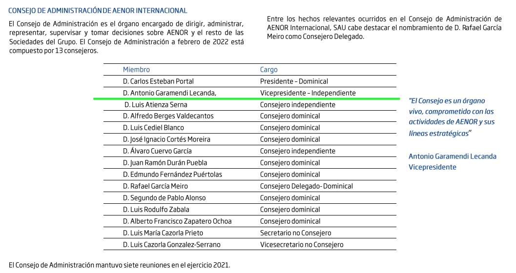 - Consejero de Red Eléctrica de España Presidente de la comisión de Gobierno Corporativo y RSC.