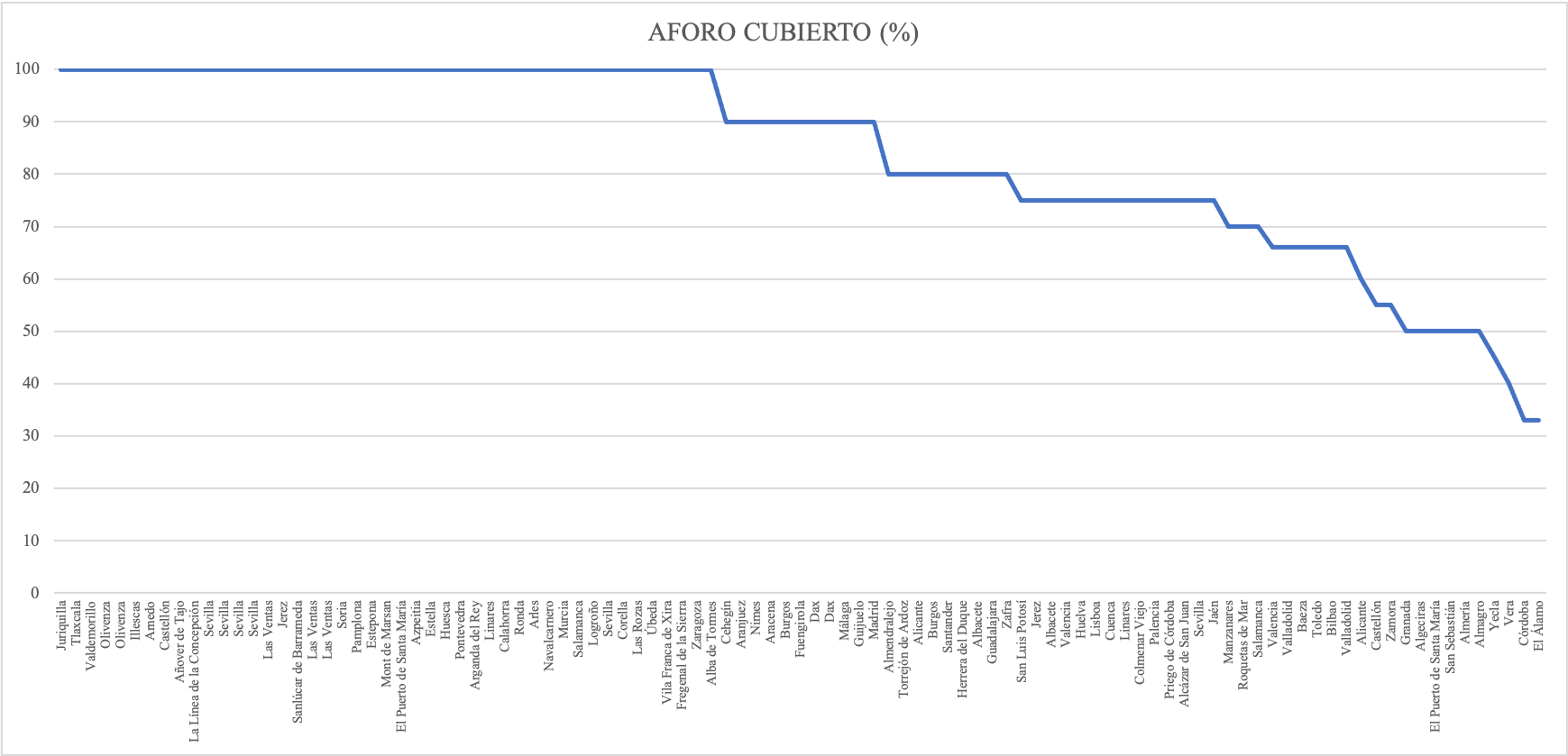 Los 735.000 espectadores que han sido testigos de las actuaciones de Morante superan holgadamente las cifras de taquilla que manejan las principales estrellas de la música. Así, el último Anuario de la Música en Vivo señala que la gira con mayor concurrencia de 2021, a cargo del cantante Dani Martín, reunió a 127.766 espectadores, seguida de los 111.933 que citó el tour de despedida de José Luis Perales o los 105.268 asistentes que se reunieron en los espectáculos ofrecidos por Aitana.