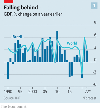 Pero Lula no solo se encontrará con vientos de cola en la economía de Brasil. Al menos, no como los que se encontró durante su primer mandato. En los últimos diez años, el crecimiento económico del país ha promediado un raquítico 0,3% anual, menos de la mitad de la tasa de crecimiento de la población, según recalca The Economist.
