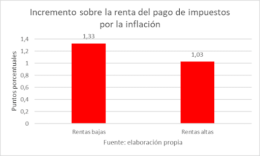 Sufren un incremento de impuestos en relación con sus ingresos por la inflación casi un tercio superior a las rentas altas.