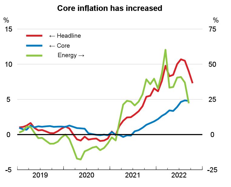 Uno de los elementos más preocupantes, y que los autores consideran que debe ser la gran prioridad de la política económica ahora, es el control de la inflación. Aunque hay signos de que en España tocó techo en verano (se pasó del 10,7 % interanual en julio al 7,3 % en octubre), la OCDE cree que va a mantenerse a un nivel elevado de forma duradera. La organización estima que, después de una inflación media del 8,6 % este año, se quedará en el 4,8 % en 2023 y seguirá a ese mismo nivel el año siguiente, cuando en la zona euro sí que se espera una caída significativa (del 6,8 % en 2023 al 3,4 % en 2024).