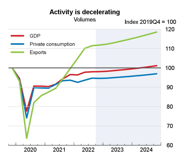 Además, el aumento de los tipos de interés del Banco Central Europeo (BCE), que van a continuar en los próximos meses para intentar yugular la inflación, van a enfriar la inversión privada y el consumo, así como el sector de la vivienda, aunque ahí no se prevé un impacto tan fuerte como en crisis anteriores ya que el porcentaje de créditos a tipo variable ha disminuido notablemente.