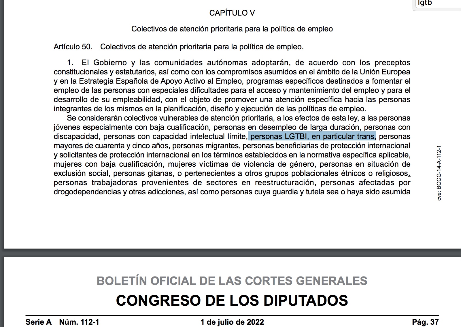 Pero los expertos de Fedea han seguido analizando el Proyecto de Ley de Empleo de Yolanda Díaz "que forma parte de la reforma estructural del mercado de trabajo" que tiene en marcha la ministra y han encontrado otras muchas deficiencias y conceptos ambiguos al margen de la prioridad a las personas LGTBI. Esta reforma de las políticas activas de empleo forman parte del Componente 23 "Nuevas políticas públicas para un mercado de trabajo dinámico, resiliente e inclusivo" incluido por el Gobierno en el Plan de Recuperación, Transformación y Resiliencia enviado a la Comisión Europea a cambio del dinero europeo.