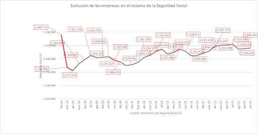 Desde febrero de 2020, se han perdido 49.714 empresas.