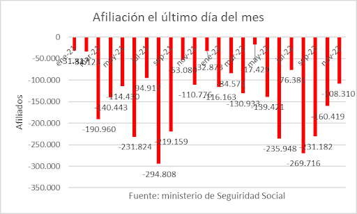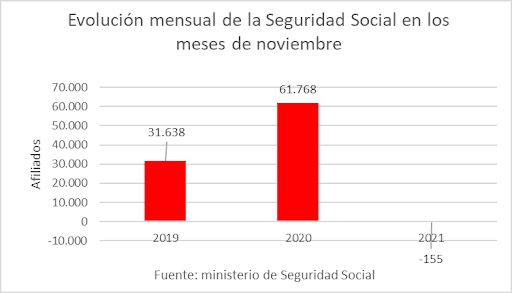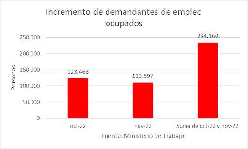 Adicionalmente, el último día de noviembre se destruyeron 108.310 empleos respecto al día anterior.