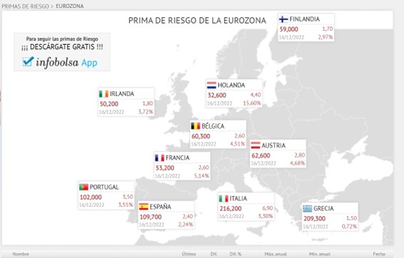 Vean lo que ha ocurrido esta semana: Lagarde anunció que no va a dar ni un paso atrás en su lucha contra la inflación y que en marzo de 2023 va a endurecer la retirada de estímulos en los mercados de deuda pública y la prima de riesgo vuelve a repuntar hasta los 109 puntos básicos al día siguiente.