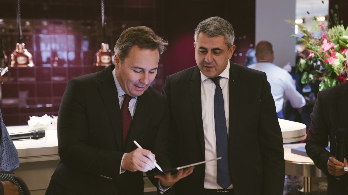 Zurab Pololokashivili, secretario general de la OMT, y Dimas Gimeno, presidente de WOW CONCEPT han firmado el acuerdo de colaboración con un almuerzo especial en su ‘flagship store’ de Gran Vía 18.