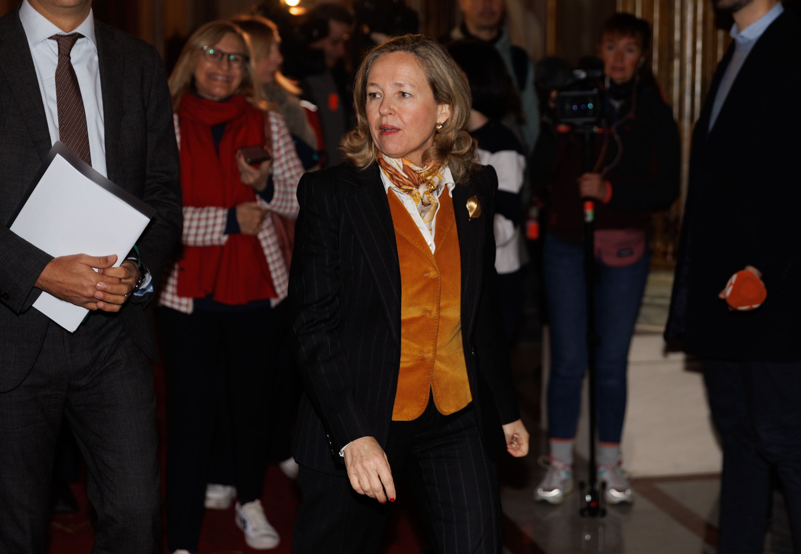 La vicepresidenta primera y ministra de Asuntos Económicos, Nadia Calviño, ha indicado este lunes que el hecho de que varios banqueros españoles cobren más de un millón de euros al año pone de manifiesto que está "claro" que es "preciso" establecer un impuesto sobre los beneficios extraordinarios del sector bancario.