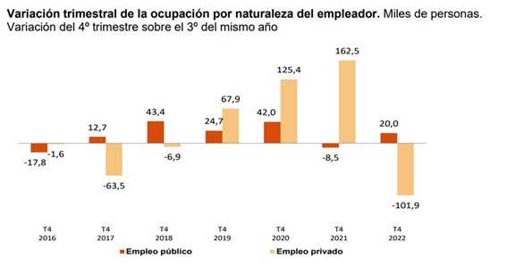- La destrucción de empleo se agudiza en el sector privado: 100.000 trabajadores menos en tan sólo 3 meses, una cifra no vista desde la crisis de 2011.