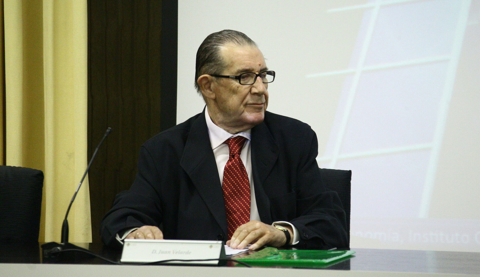 Velarde nació en la localidad asturiana de Salas en 1927 y se doctoró en Madrid en Ciencias Políticas y Económicas con el Premio Extraordinario. A partir de aquí, desarrolló una extraordinaria trayectoria docente e intelectual que influyó a los más relevantes economistas españoles de las últimas décadas.