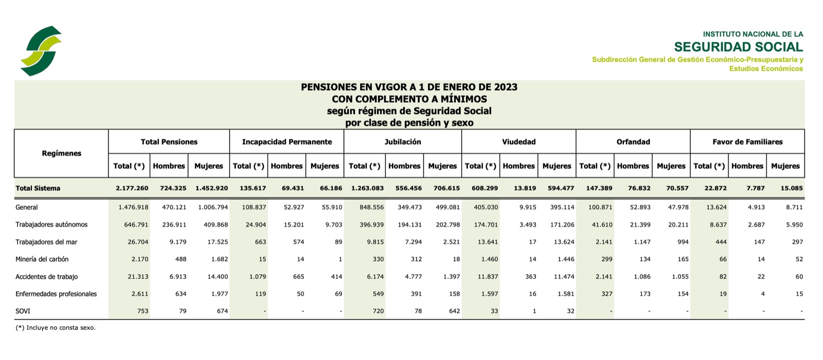 Con todas esas reglas, un total de 2,17 millones de pensiones se acogen a este sistema de complementos. En concreto, 1,45 millones de mujeres y 724.325 hombres. Sólo en las prestaciones por jubilación se concentran casi 1,3 millones de esas pensiones con complemento. En viudedad hasta 608.299. En orfandad otras 147.389. En incapacidad permanente 135.617. Y en favor de familias el resto: 22.872.