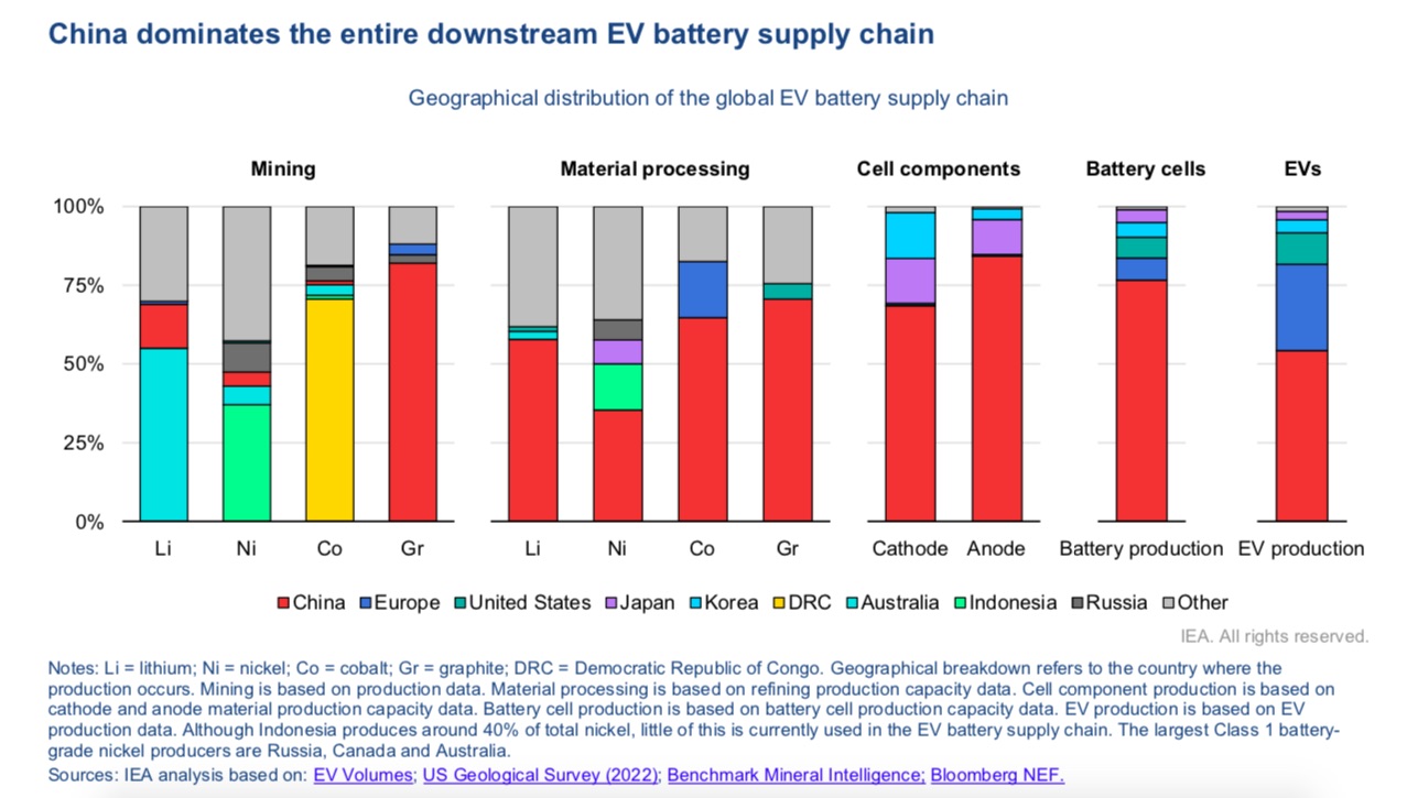- La mitad de la capacidad de procesado y refinado de litio, cobalto y grafito está en China.