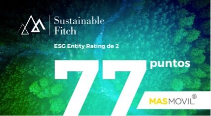 Grupo MASMOVIL ha logrado un nuevo hito de especial relevancia en relación con su compromiso con la sostenibilidad y los criterios ESG (medioambientales, sociales y de buen gobierno corporativo) al obtener un "ESG Entity Rating" otorgado por Sustainable Fitch con un rating 2.
