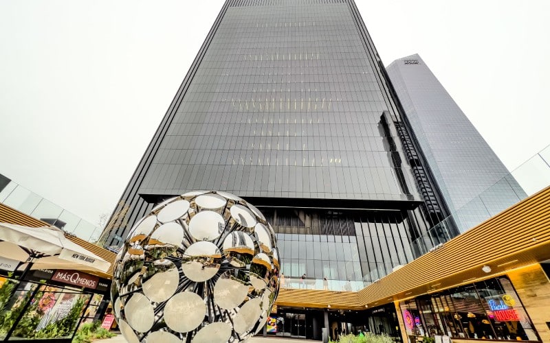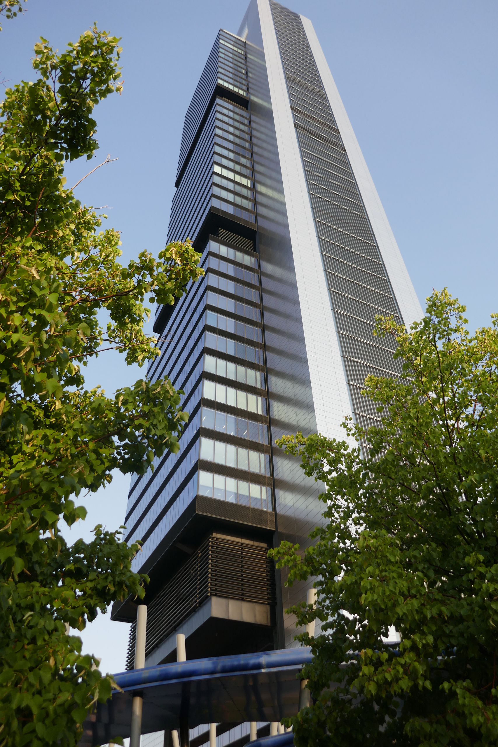 Solo hay un edificio que le haga sombra a la Torre de Cristal y es el que está justo a su lado. Mide tan solo un metro menos que su hermana mayor, es decir, 248. También tiene una planta menos, 49. El diseño corrió a cargo del arquitecto Norman Foster. Su silueta se distingue porque la estructura está dividida en tres grandes bloques, sujetadas por dos enormes estructuras de hormigón. Si desde fuera es impresionante, desde dentro no lo es menos: solo el vestíbulo tiene una altura de casi 14 metros.