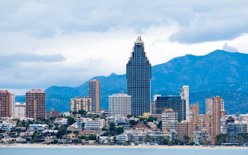 Otro de los rascacielos más altos de España cuenta con 186 metros. Tiene 52 plantas y casi 800 habitaciones, pero si es un edificio de récord no es por eso, sino porque es el hotel más alto de Europa. Fue también durante unos años el edificio más alto de España. Ahora ocupa el sexto lugar, pero no por ello ha perdido atractivo. De hecho, su mirador panorámico ofrece unas vistas espectaculares y se ha convertido en uno de los grandes atractivos de Benidorm.