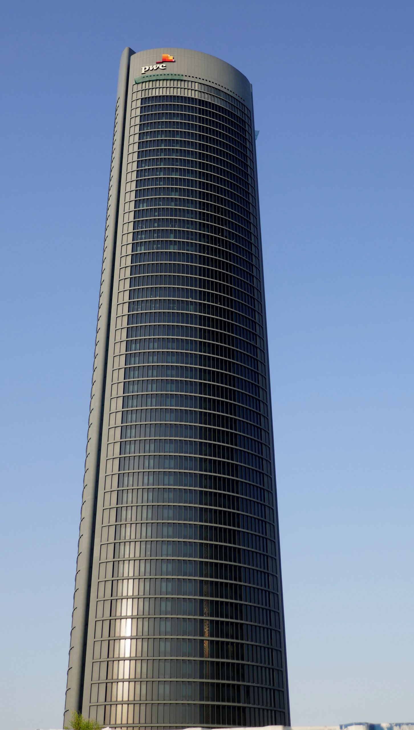 Es la tercera de esas cuatro torres de Madrid que están a la cabeza de los edificios altos de España, esta tiene 236 metros de altura. Pero es diferente a ellas. En primer lugar, es la única diseñada por arquitectos españoles, en concreto por Carlos Rubio Carvajal y Enrique Álvarez-Sala Walter. En segundo lugar, se diferencia por un singular revestimiento de cristal en forma de escamas. Además, no solo alberga oficinas, también un exclusivo hotel desde cuyo restaurante panorámico es posible disfrutar de unas estupendas vistas de Madrid. Y hay más: en su azotea, tres generadores son capaces de producir energía eólica para el autoconsumo.