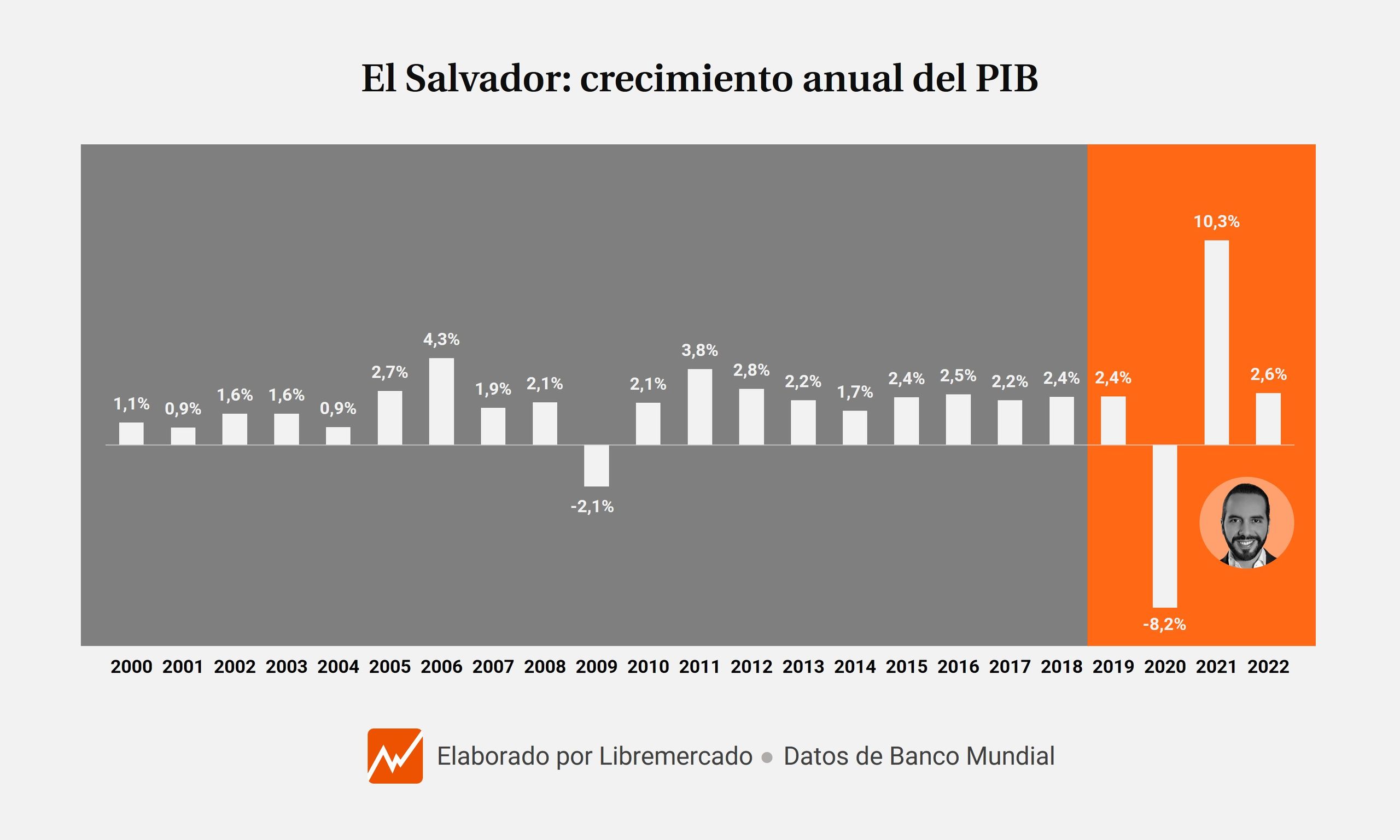 En la actualidad, El Salvador lucha por recuperarse consistentemente del impacto de la pandemia. Así, la caída del PIB del 8,2% en 2020 fue compensada por un repunte del 10,3% en el año 2021 y del 2,6% en el 2022. En cuanto al 2023 y los próximos ejercicios, se prevé que el crecimiento anual no llegue al 2%, tasas positivas, pero probablemente insuficientes para lograr un genuino despegue de la economía salvadoreña.