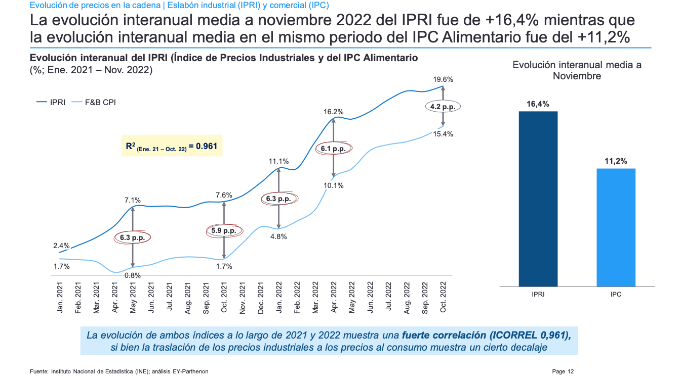 Lo primero que destacó el ponente es que la inflación empezó a subir en verano de 2021, un semestre antes del estallido de la guerra en Ucrania. El pico de la subida de precios se habría dado el pasado verano, en julio de 2022, cuando el IPC alcanzó el 10,8%. Sin embargo, el IPC alimentario ha seguido aumentando y, llegado enero de 2023, seguía en el 15,4%.