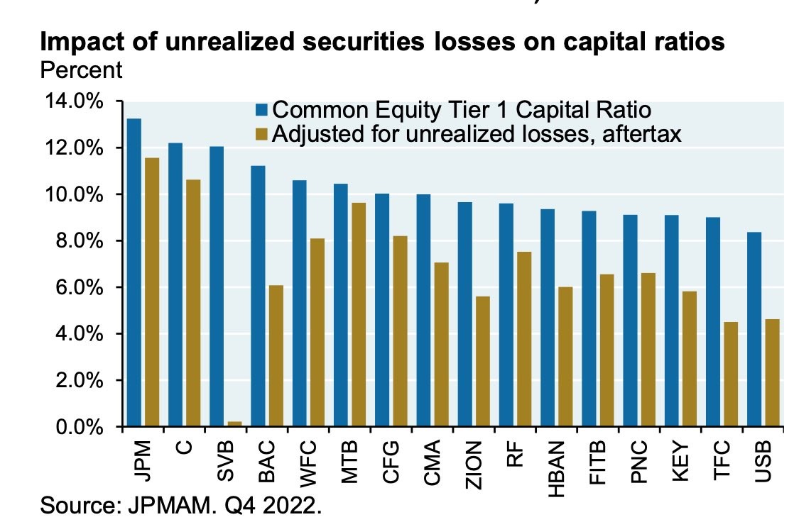 Ante esta retirada de depósitos, SVB necesitó liquidez y trató de vender sus bonos de deuda en los mercados con carácter de emergencia. Los inversores, ante un bono al 1,8% como el que vendía 1,8% y otro al 3,3% como el que pone en mercado el Tesoro Norteamericano, la elección fue el segundo. De ahí una pérdida de 1.800 millones de dólares sobre una cartera valorada inicialmente en 21.000 millones de dólares.