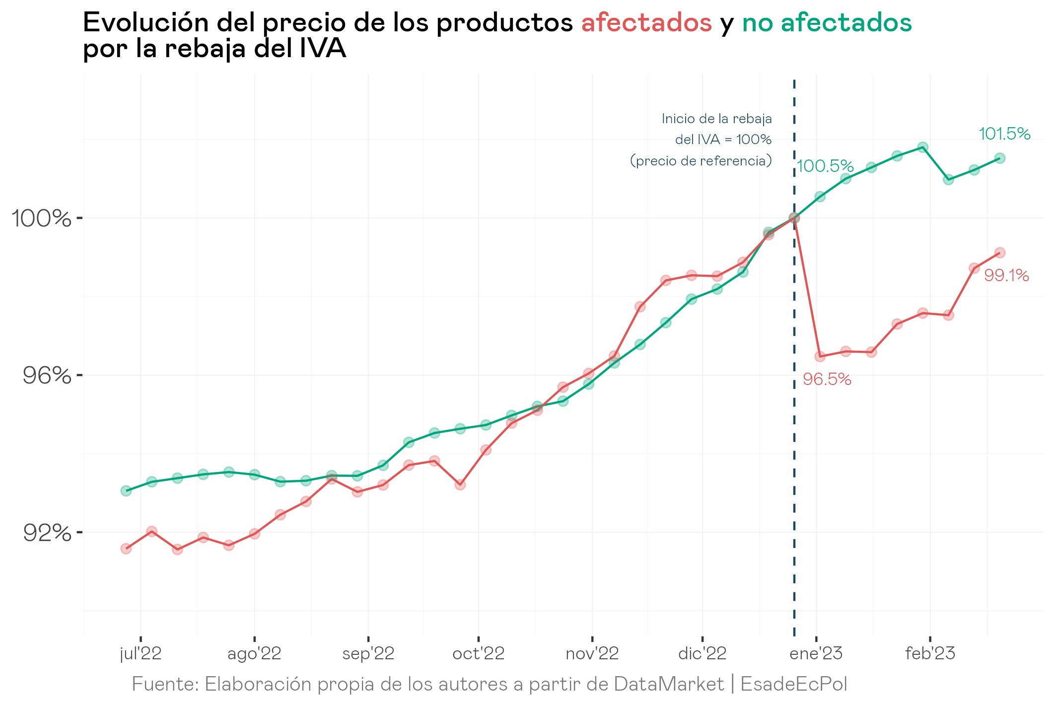 Por otro lado, Esade entiende que el impacto redistributivo de la medida ha tenido un efecto progresivo, ya que ha supuesto un ahorro mayor para los hogares de renta baja en proporción a su gasto total. Es decir, como las personas con menos ingresos gastan más porcentaje de estos en productos básicos cuyo IVA ha sido rebajado, se han visto, proporcionalmente, más beneficiados que los ricos.