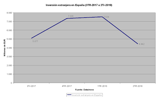 De hecho, nada más llegar ya se produjo un deterioro en la inversión extranjera en España, perdiendo de un trimestre a otro más de 3.000 millones de euros, como podemos observar, pero se podría pensar que podía ser fruto de venir de alguna operación especial de inversión anterior.