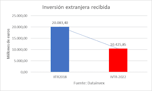 Sin embargo, los datos de la evolución de la inversión extranjera en España de los últimos cuatro años y medio son demoledores, como puede observarse con los datos del cuarto trimestre de 2022 (último dato publicado).
