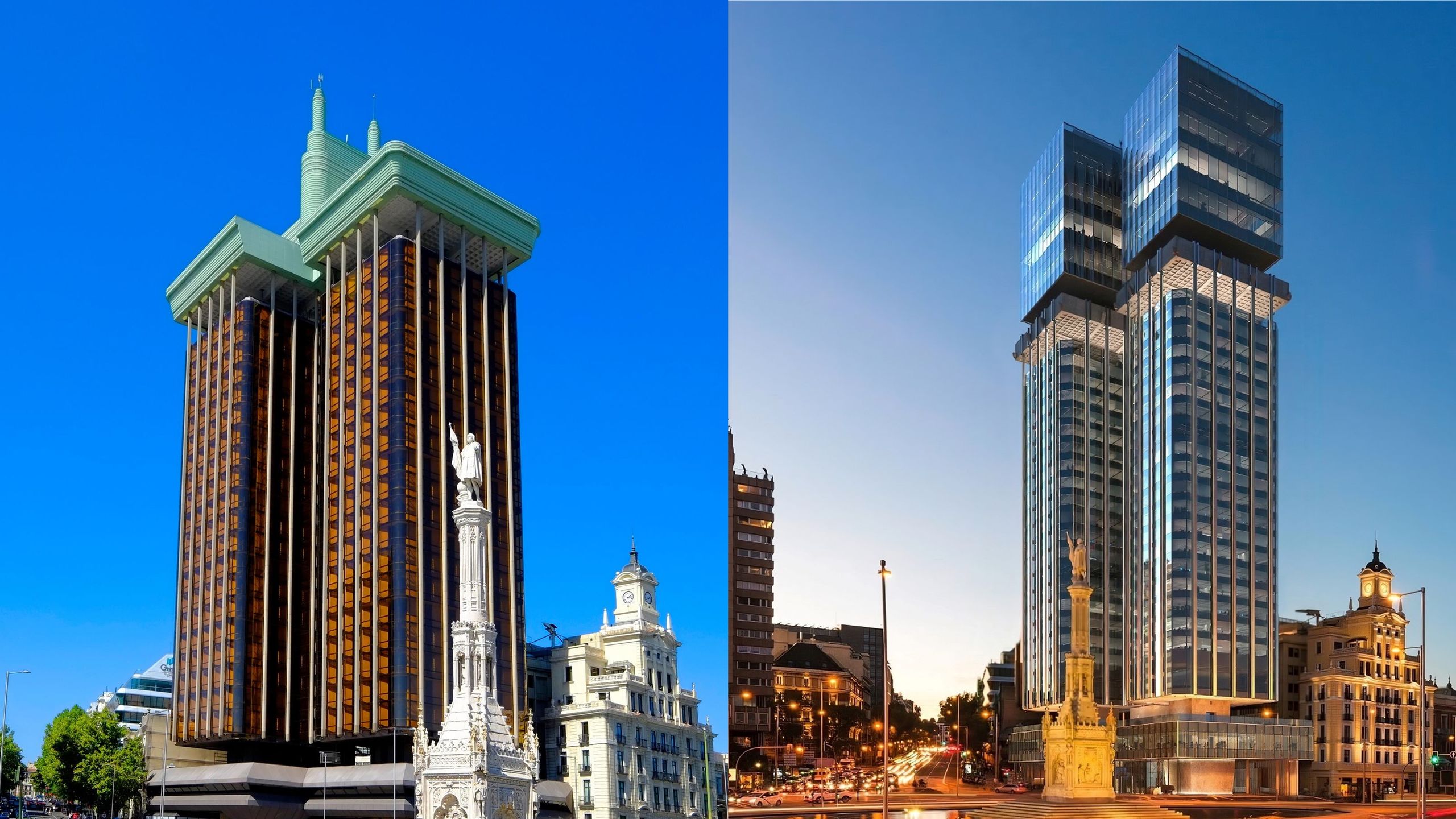 Se prevé que este año 2023 culminen las obras de ampliación y remodelación de las icónicas torres de la Plaza de Colón, que alcanzarán las 27 plantas y eliminarán su particular remate con forma de enchufe. Mutua Madrileña ha invertido 65 millones en esta actuación dirigida por el arquitecto español Luis Vidal.
