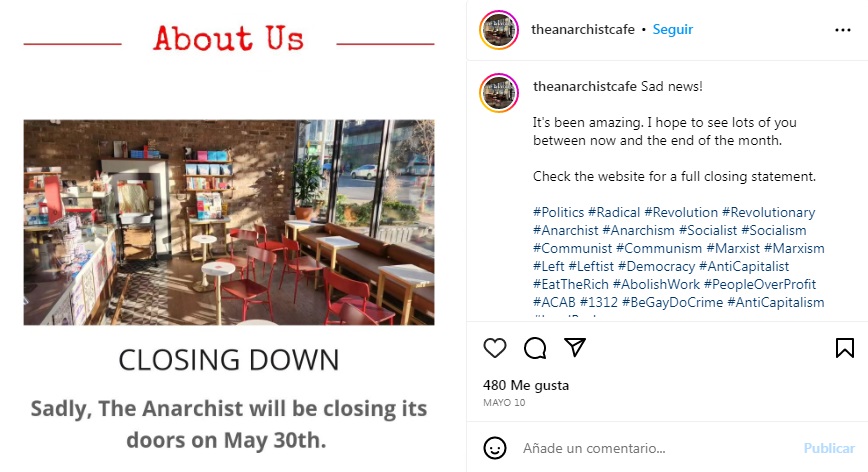 En los últimos días Libre Mercado ha publicado información sobre el supermercado anticapitalista La Garbancita Ecológica al que acude Ione Belarra que se autodenomina "Autogestionado, Popular, Ecofeminista". Sin embargo, al otro lado del charco existen, también, negocios que pretenden sobrevivir rechazando el modo de producción capitalista. Es el caso de The Anarchist, cafetería canadiense que hace unos días anunció su cierre.