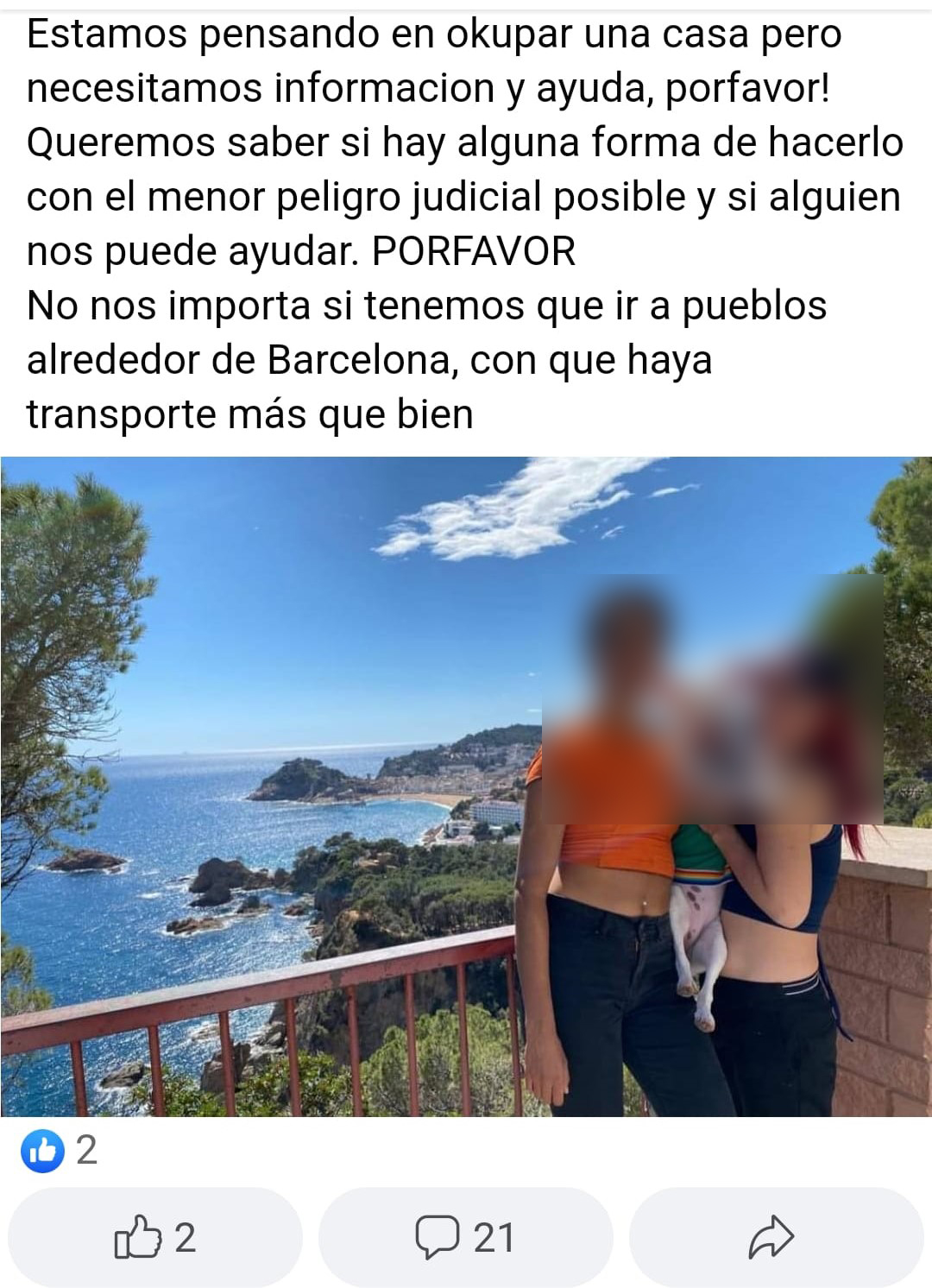 Entre los miles de anuncios que se encuentran en la red, hay mensajes de jóvenes que no dudan en colgar sus fotos como reclamo. Aquellos que no tienen experiencia piden ayuda para okupar una vivienda “con el menor peligro judicial posible".