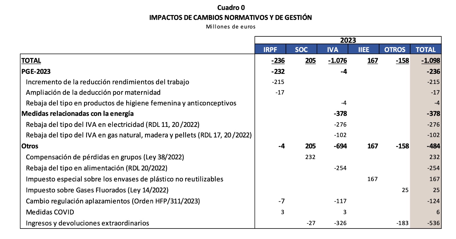 La realidad del coste de esta medida ha quedado retratada en los propios informes de la Agencia Tributaria. Allí se recoge el coste de las reformas normativas para 2023. Y en la casilla de la "rebaja del tipo en alimentación", "IVA" figura una cifra: 254 millones, que dividida entre todos los españoles arroja la generosa rebaja fiscal de medio euro por mes y español. Porque lo cierto es que la recaudación del IVA se ha disparado en general precisamente por el alza de los precios.