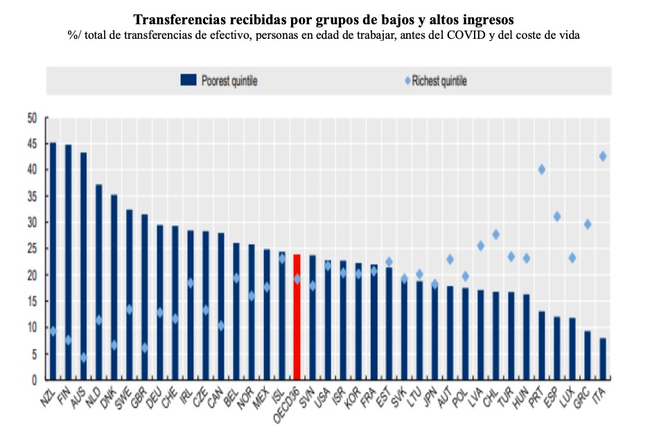 "Al margen de otras consideraciones, lo descrito muestra la ineficacia y regresividad de la política gubernamental. En este sentido cabe resaltar que los principales beneficiarios de las ayudas sociales arbitradas por el Ejecutivo han sido los grupos con niveles de rentas más altos. En concreto, el 20 por 100 de las personas con mayores ingresos han recibido más del 30 por 100 del total de los programas puestos en marcha por el Gobierno desde 2020, mientras el 20 por 100 más pobre sólo percibió el 12 por 100. España mantiene junto a Italia, Grecia y Luxemburgo el liderazgo de una política redistributiva con efectos más regresivos para sus hipotéticos destinatarios", sentencia Freemarket.